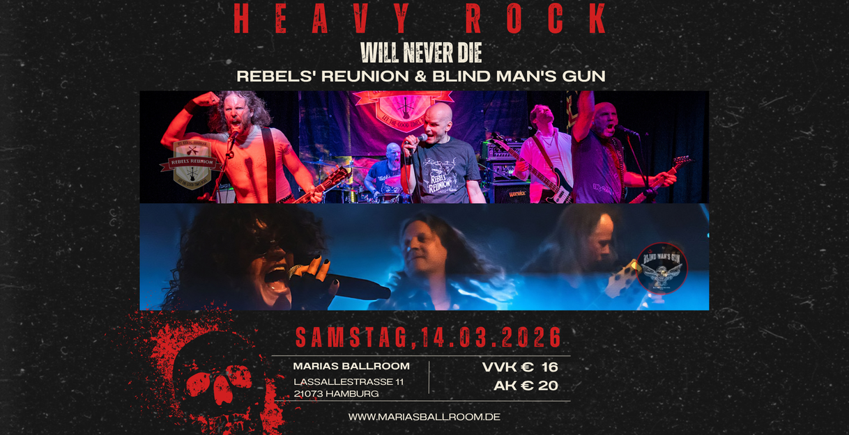 Live, REBELS' REUNION are an almost unrivaled force of nature, a fact they've impressively demonstrated at numerous concerts in Northern Germany. Their high-energy shows are incredibly entertaining, as the guys don't take themselves too seriously. Their music, however, is something they take very seriously. The band's incredible enjoyment and conviction in their music are evident every second of their performance. This energy quickly spreads to every member of the audience. The band's strengths aren't limited to live performances. Their self-titled album, released in 2019, garnered critical acclaim from leading online magazines. Another powerful and hard-rocking album, "Proud To Be Loud," was released on May 12, 2023. But playing live remains the band's true passion.