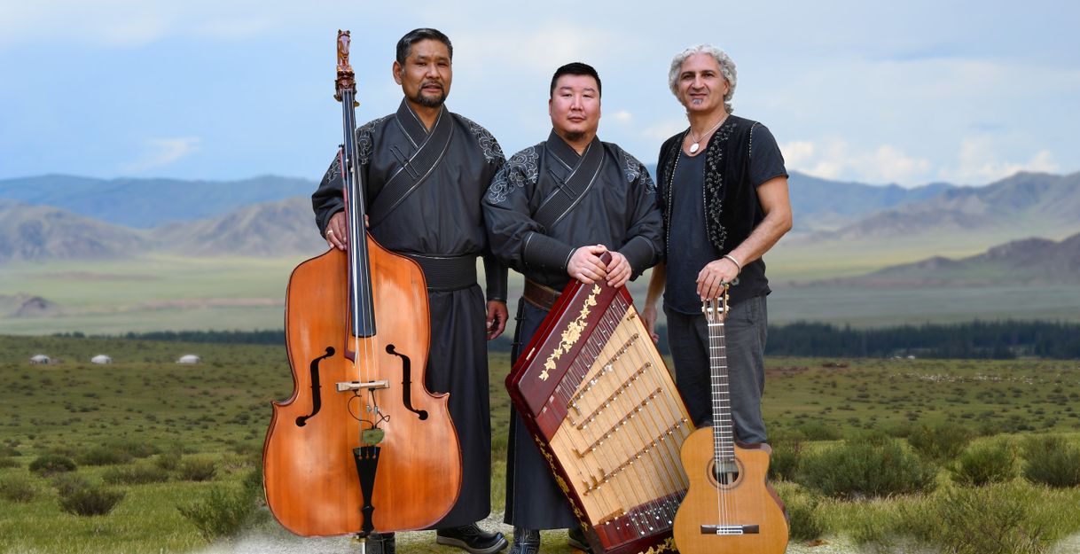 The master singer Naraa Naranbaatar, trained in his Mongolian homeland, the virtuoso dulcimer player Ganzorig Davaakhuu , and the Iranian multi-instrumentalist Omid Bahadori transport their fans to an exotic sound world between the Orient and the Mongolian steppe .